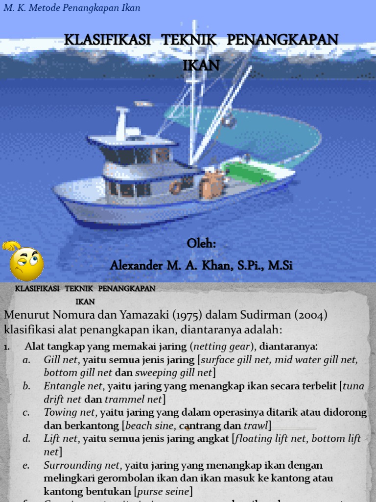 Tempat memancing tidak terbatas dan jenis alat tangkap lainnya dibuat untuk mengakomodasi lokasi penangkapan ikan bisa di sungai kolam danau laut atau di atas es. Tangkap alat dan sistem penangkapan ikan teknologi rancang bangun alat tangkap dan kapal perikanan teknologi penangkapan ikan serta teknologi sistem informasi perikanan tangkap. KLASIFIKASI ALAT PENANGKAP IKAN Subani dan Barus 1989 menggolongkan alat tangkap ikan dalam 10 sepuluh kategori yaitu.